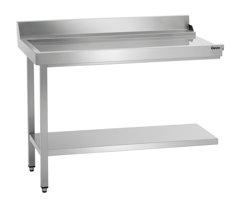La table d'égouttage de 1,2 m est conçue pour être installée à gauche d'un lave-vaisselle à convoyeur DS de Bartscher. Une tablette inférieure permet de ranger les paniers.