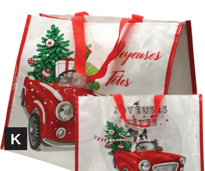 Sac cabas PP tissé PPT Décor Hiver VOITURE 40x24x35cm